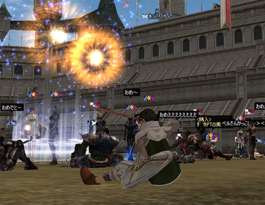 最近の戦争で一番うれしかった事は![]() 英雄に多分アンカー決まった事 こんばんわ、あふろけんです 今回は同盟でのC4サヨナラPvP大会ってことで 時間ギリギリにinしたらメールが一通・・・ ーーーー( ;゚д)ザワ(;゚д゚;)ザワ(д゚; )ーーーーー とりあえず急いでコロシアムへ ![]() 一応間に合ってメンバーで作戦立てて、 一回戦 戦闘中はSS撮れなかったので、イメージ図 ![]() こんな感じで なんとか一人も逝かずに、 一回戦突破! ![]() 途中UD放置とかあったりしつつ 二回戦 ![]() 突破! あれよあれよと準決勝 ここはアンカー+パラライズのタブル麻痺チャンスを狙うしか!!!!!!!111 まぁ、見事に ![]() ダブルでハズれて ![]() 準決勝敗北・毛・`) 決勝戦観戦中になぜか ![]() 微妙な体制で固まり ![]() 微妙な体制のままフィナーレ ![]() 表彰式ではワイバーンサービスもあったり その後 ![]() 紅白戦あったり ![]() バトルロワイヤルで忘れ去られたり 一言でまとめると やっぱり イベント(・∀・)イイ! ・追伸 ![]() 今回のベストショット どもです!(ぉ |